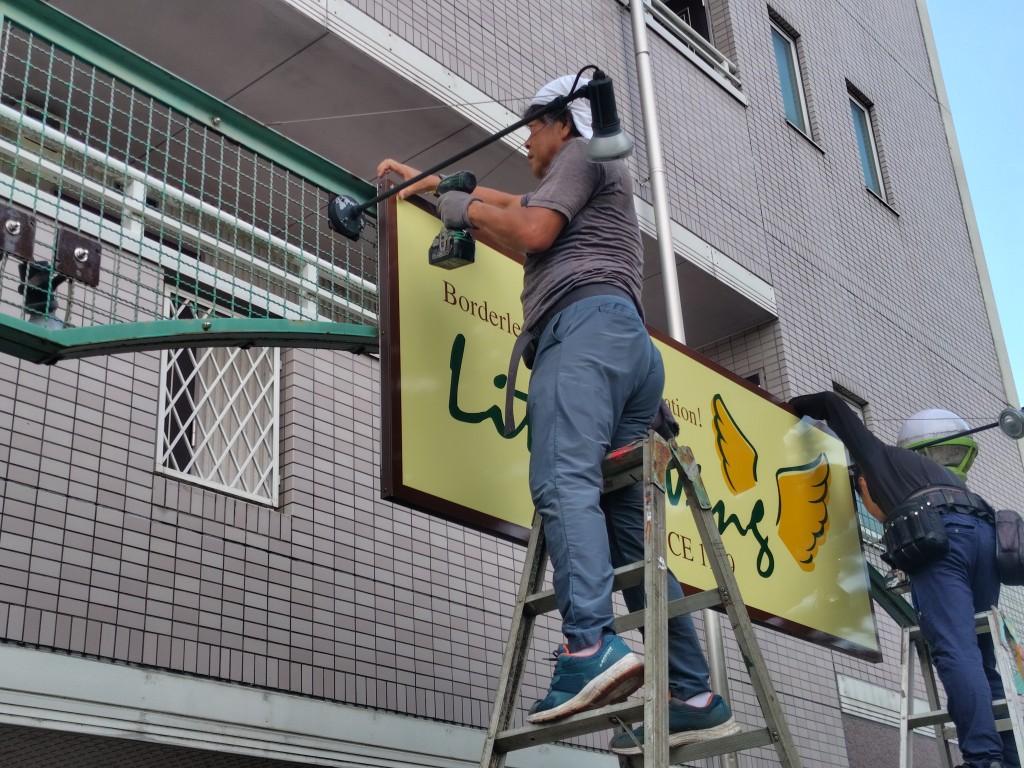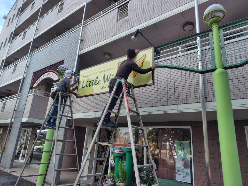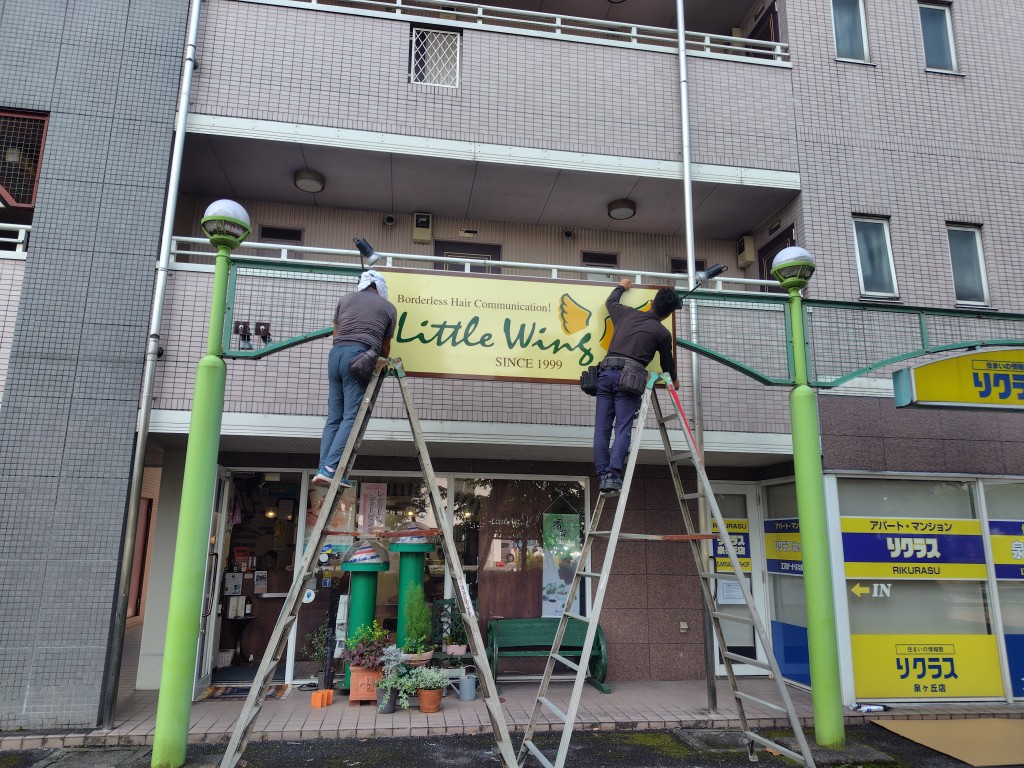 新しい看板をつける前に